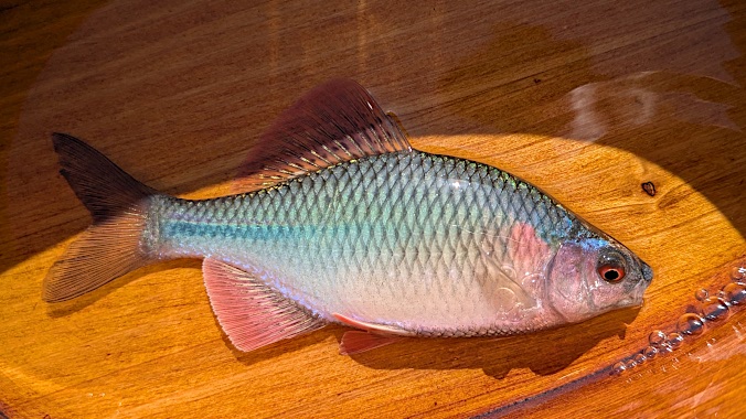序盤は6時20分頃から開始。水位が低いのもあり、他と比べて少しでも深い場所に小型カネヒラが大量に溜まっているような状況で、多くが♀カネでたまに♂カネ・ヤリ・ボテが釣れる感じ。小型♂カネの婚姻色はピークを過ぎた雰囲気。
